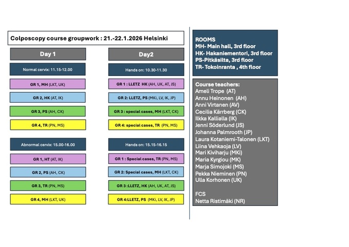 The course will be held in English with distinguished international and Finnish speakers in collaboration with the Finnish colposcopy society and NordColp (Nordic colposcopy society).